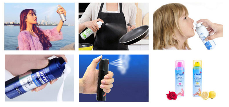 此套設(shè)備已廣泛用于醫(yī)藥、衛(wèi)生、消防、日用化工等行業(yè),如:防曬噴霧、剃須泡沫、殺蟲劑、消毒劑、家用滅火劑、電腦清洗劑。