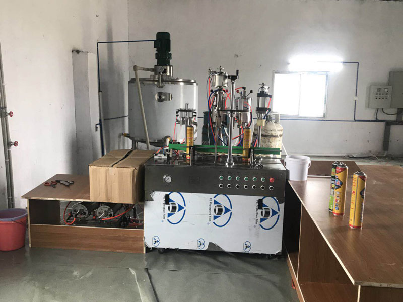 2、整由白料灌裝機(jī),黑料灌裝機(jī),封口機(jī),二甲醚充氣機(jī),丙丁烷充氣機(jī),壓螺紋蓋機(jī)組成。