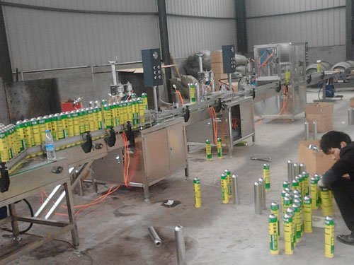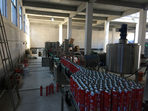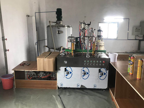 生產(chǎn)流程:原料生產(chǎn)-理瓶-白料灌裝-黑料灌裝-放閥門-封口-充二甲醚-充丙丁烷-壓螺紋蓋-扣外蓋-振搖機。